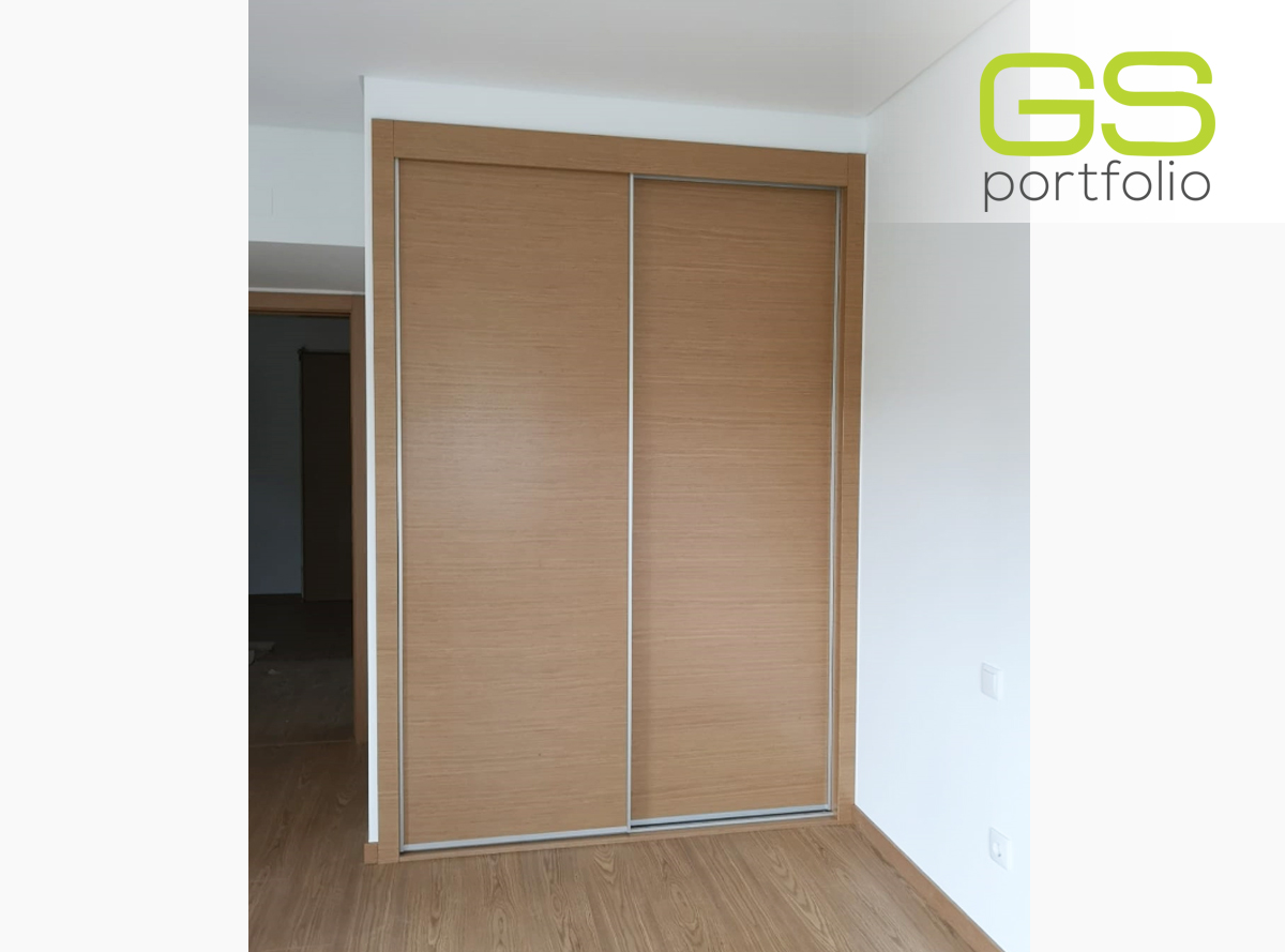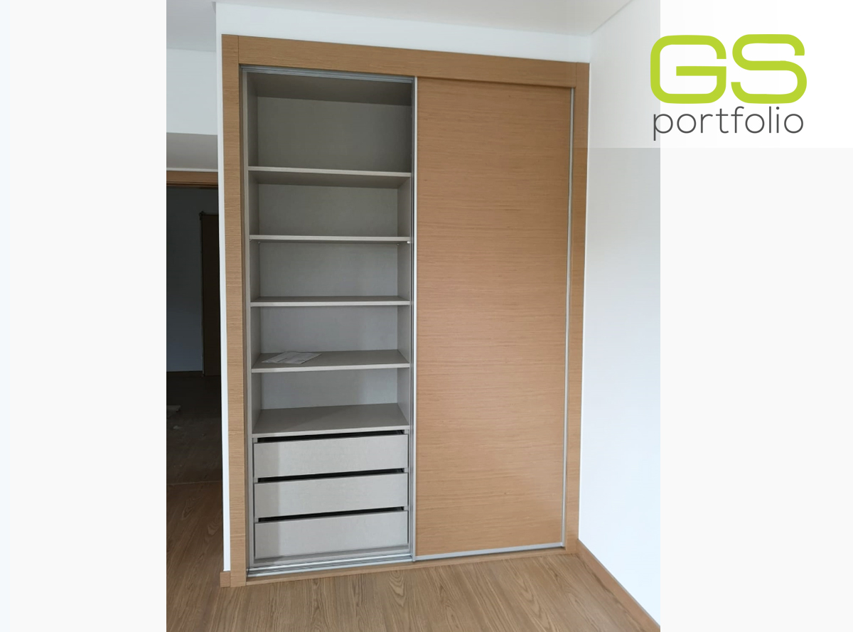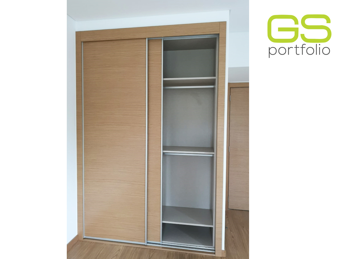 - Armario empotrado GS CONCEPT de 2 puertas correderas con acabado vinílico: Roble Natural y perfil lateral tirador de aluminio.