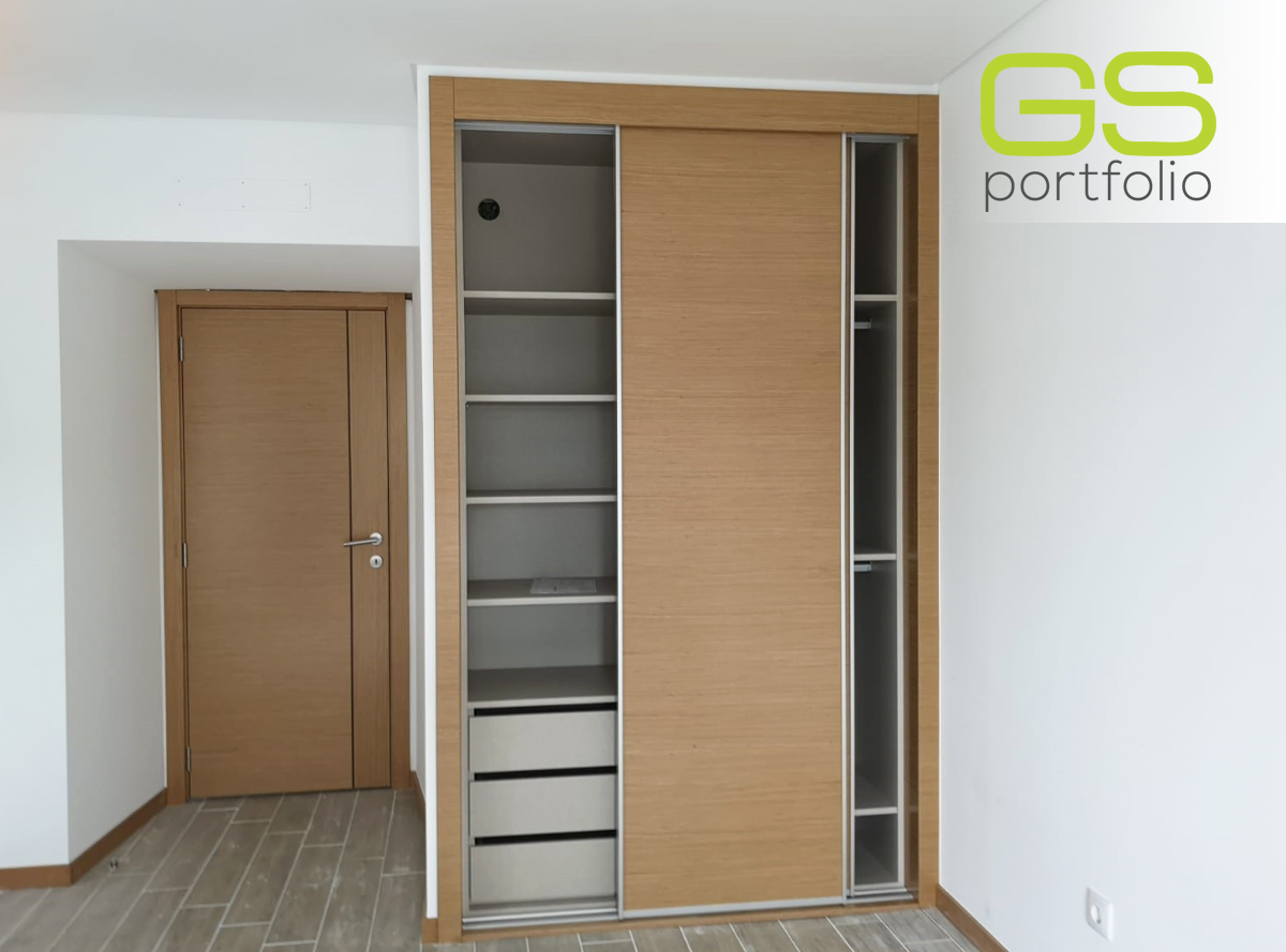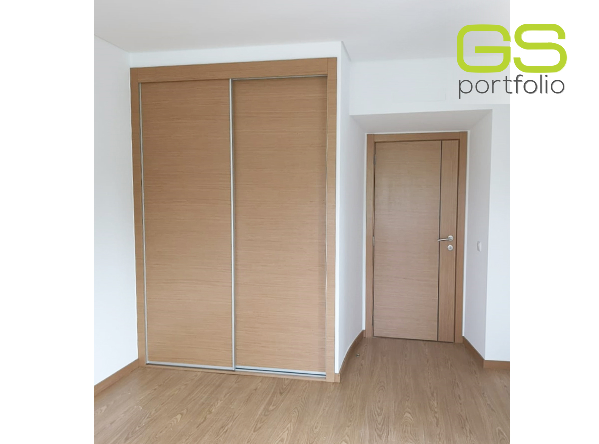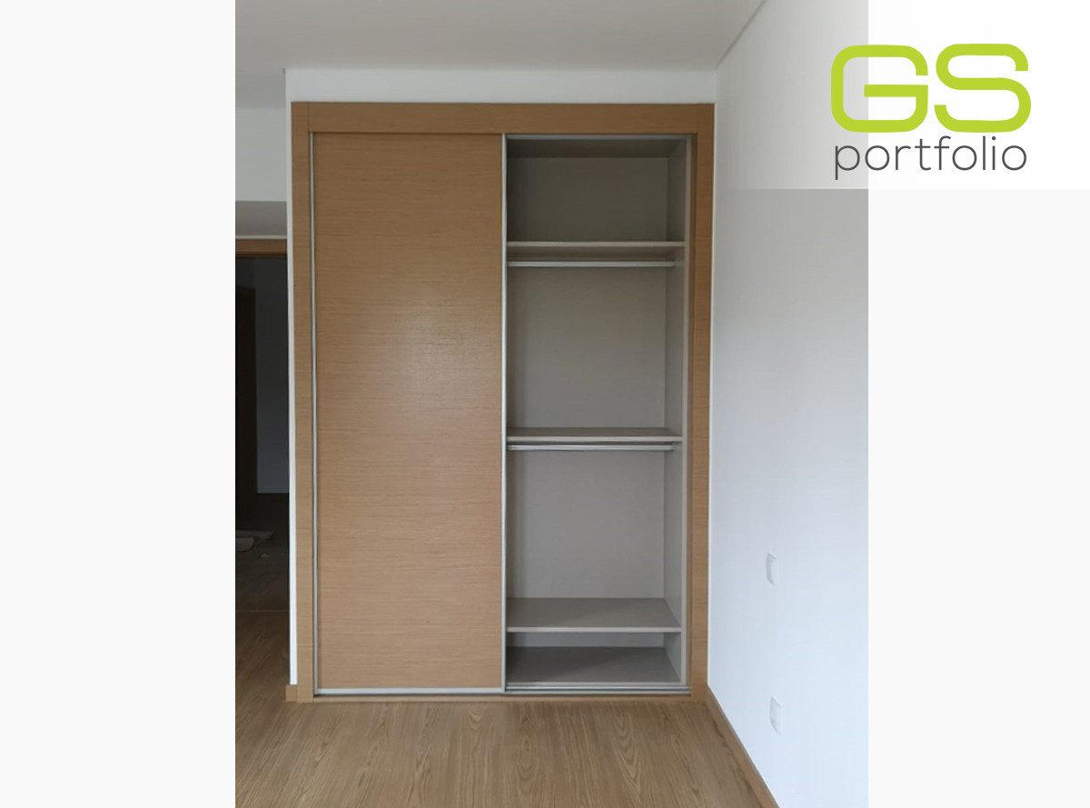 - Armario empotrado GS CONCEPT de 2 puertas correderas con acabado vinílico: Roble Natural y perfil lateral tirador de aluminio.