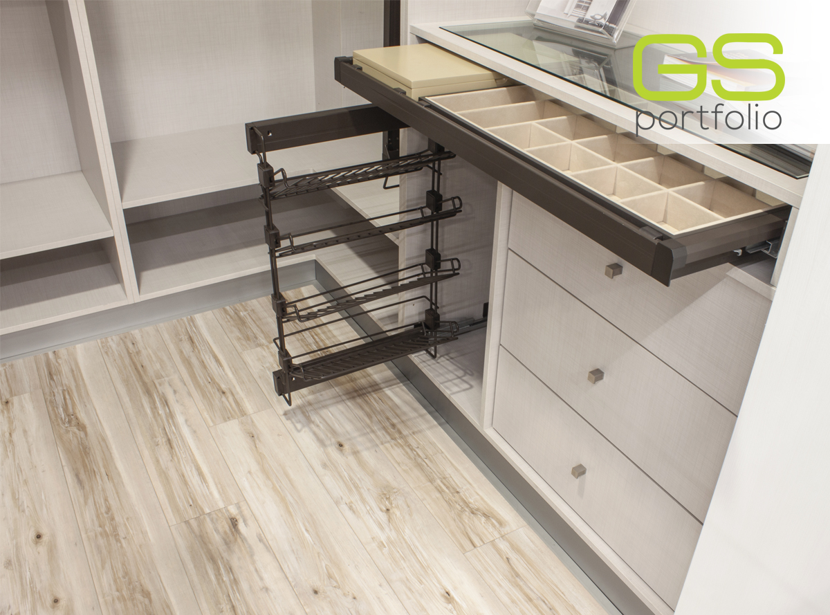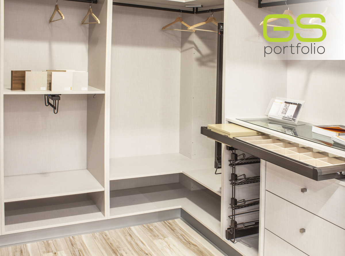 - Closet GS CONCEPT, arreglo en U con interior en melamina 19 mm Linen Cancun.