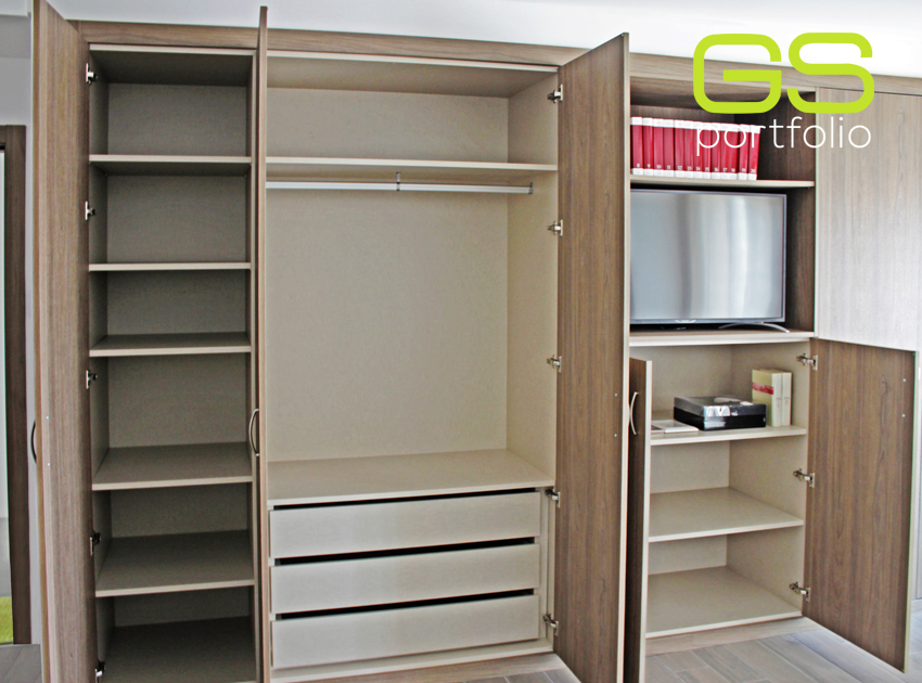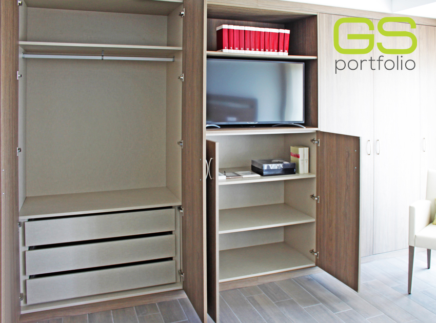 - Roupeiro embutido GS CONCEPT com portas batentes revestidas com folha de vinil da gama VINYL TOUCH – Olmo Escuro.